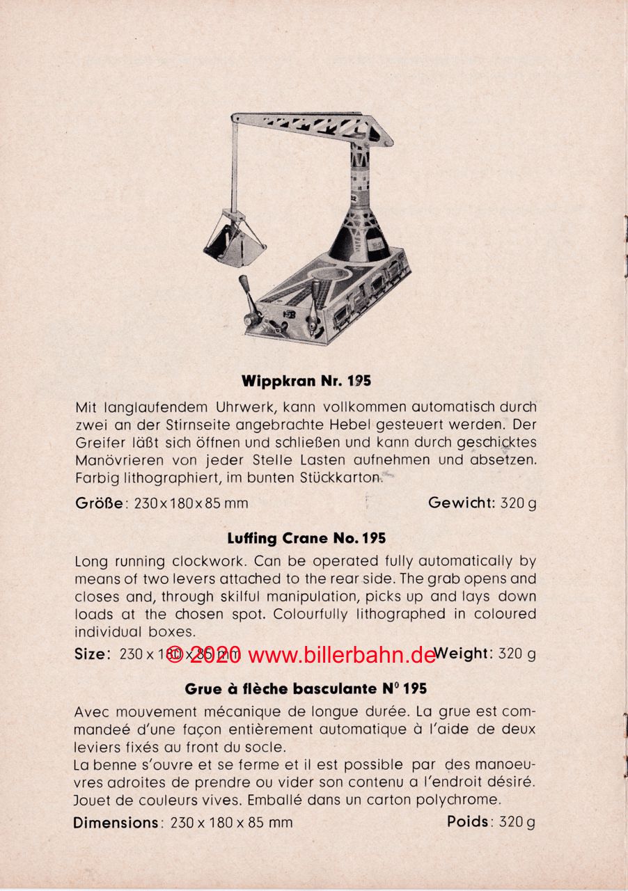 Novelties 1962 presenting: 860 Crane Truck, 863 Crane Set, 1805 Loading Ramp and Giant 1810 E, Page 4 left blanc inserted leaflet presenting the Chirpy